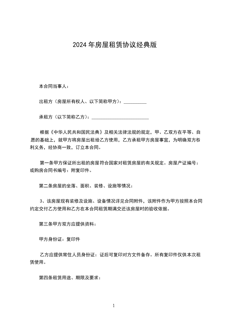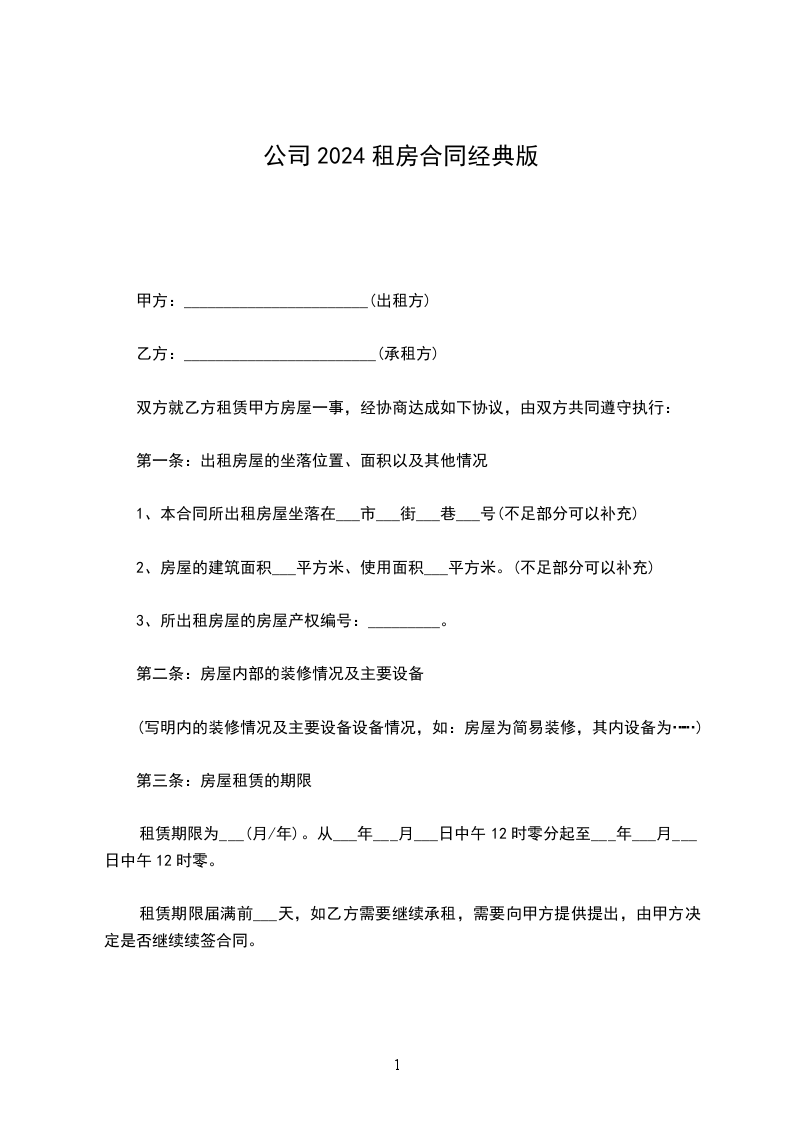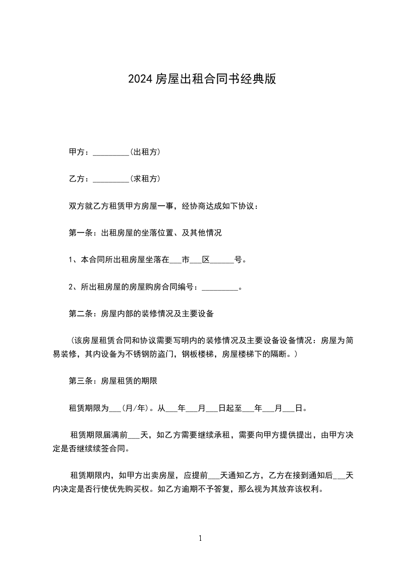 一、甲方将位于__________________租赁给乙方。甲方对所出租的房屋具有合法产权。