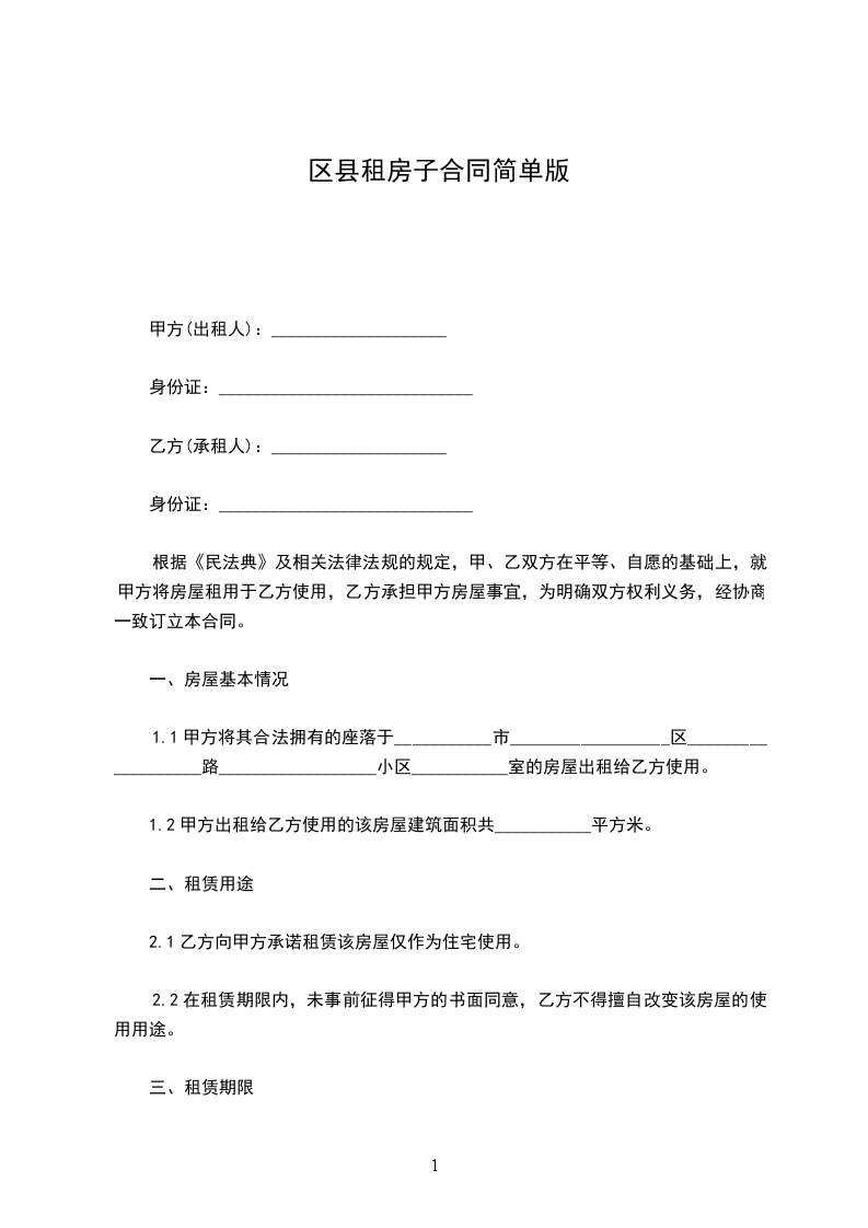 1.1甲方将其合法拥有的座落于___________市__________________区___________________路__________________小区___________室的房屋出租给乙方使用。