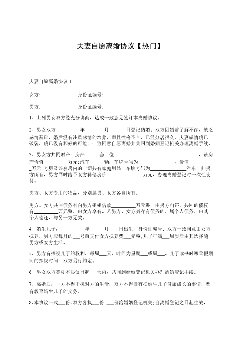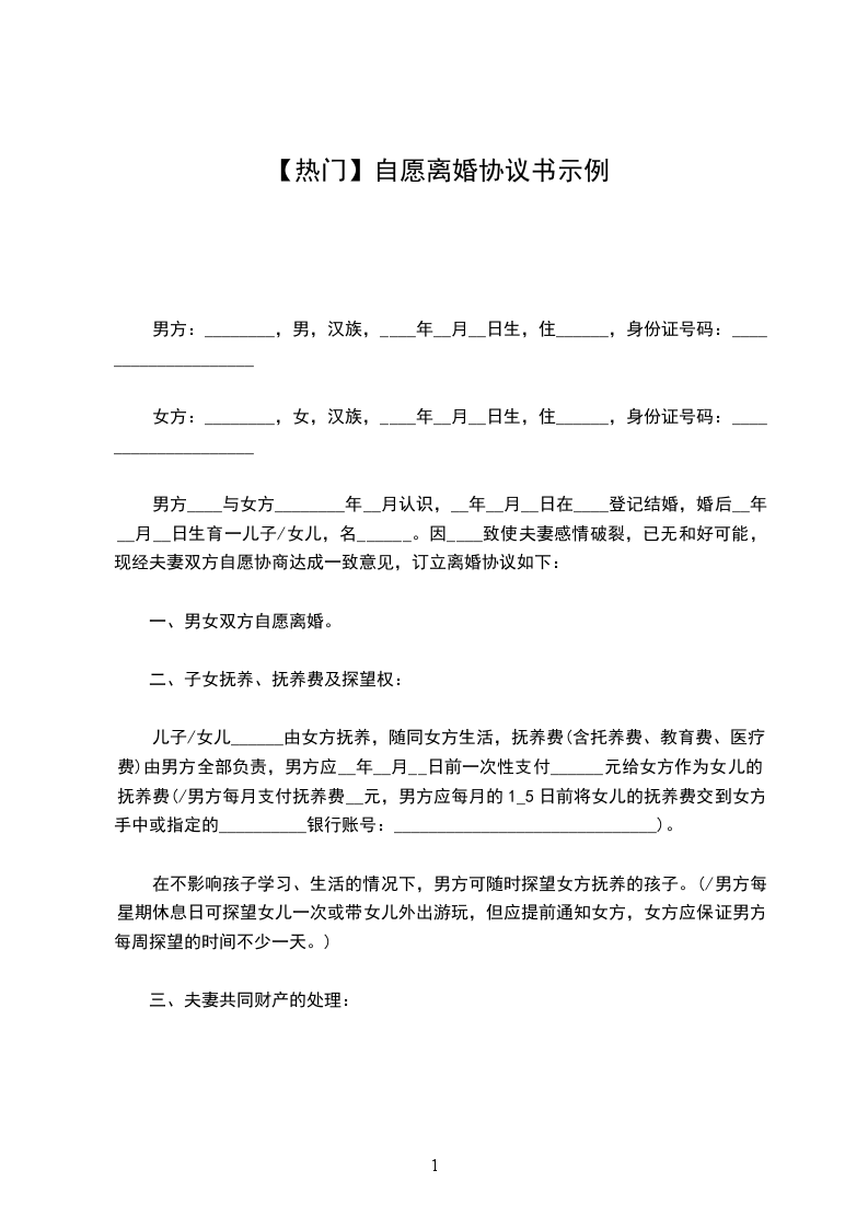 一、男方________与女方________自愿离婚。