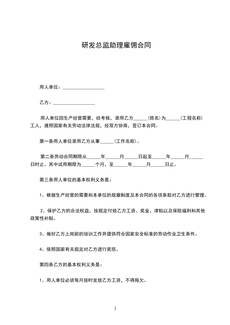 第一条用人单位录用乙方从事______(工作名称)。