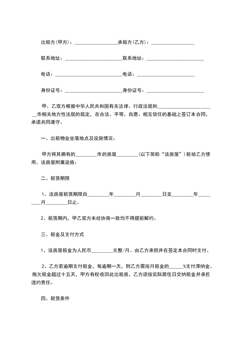 1、该房屋租赁期限自_________年_________月_________日至_________年_________月_________日止。