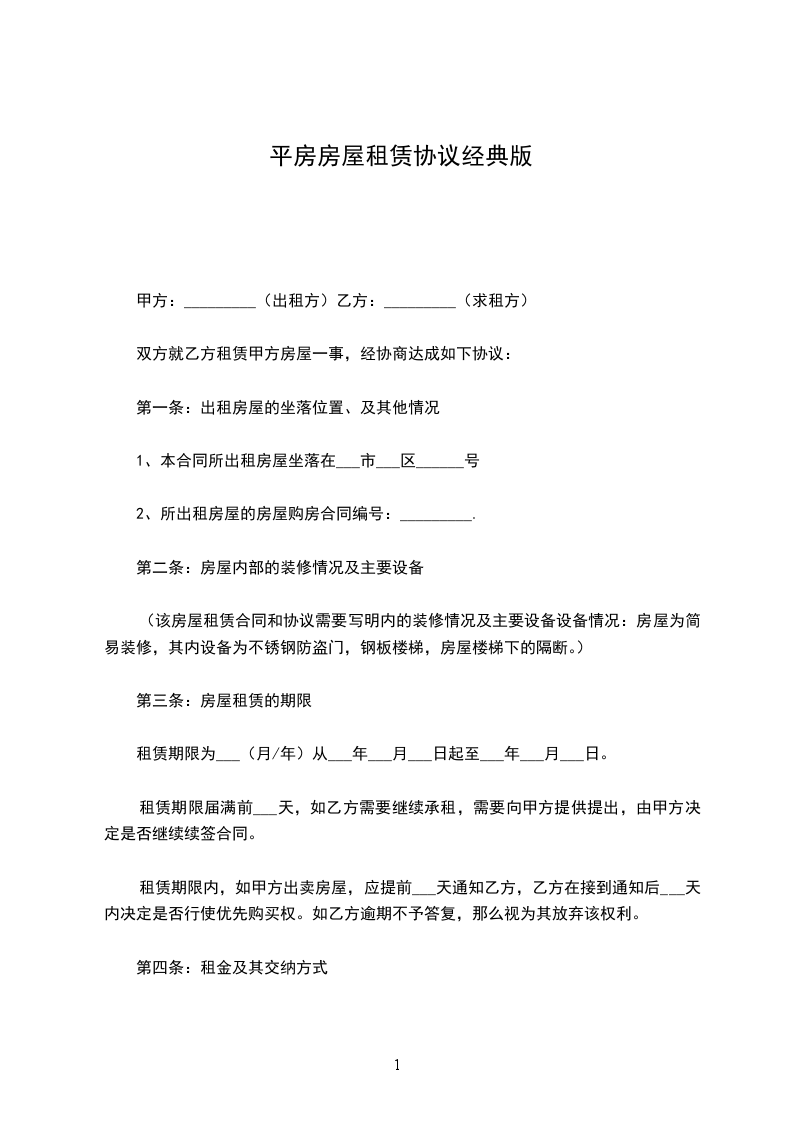 (该房屋租赁合同和协议需要写明内的装修情况及主要设备设备情况:房屋为简易装修,其内设备为不锈钢防盗门,钢板楼梯,房屋楼梯下的隔断。)