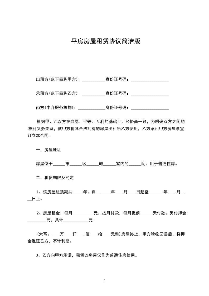 出租方(以下简称甲方):___________身份证号码:__________________