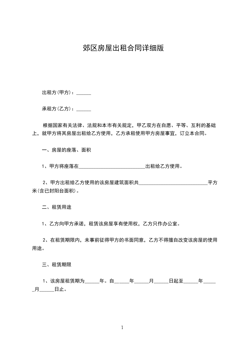 1、该房屋租赁期为______年。自______年______月______日起至______年______月______日止。