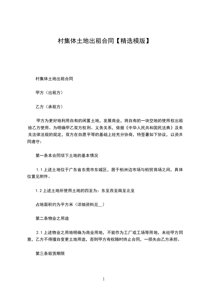 第一条;租赁土地的地名面积。