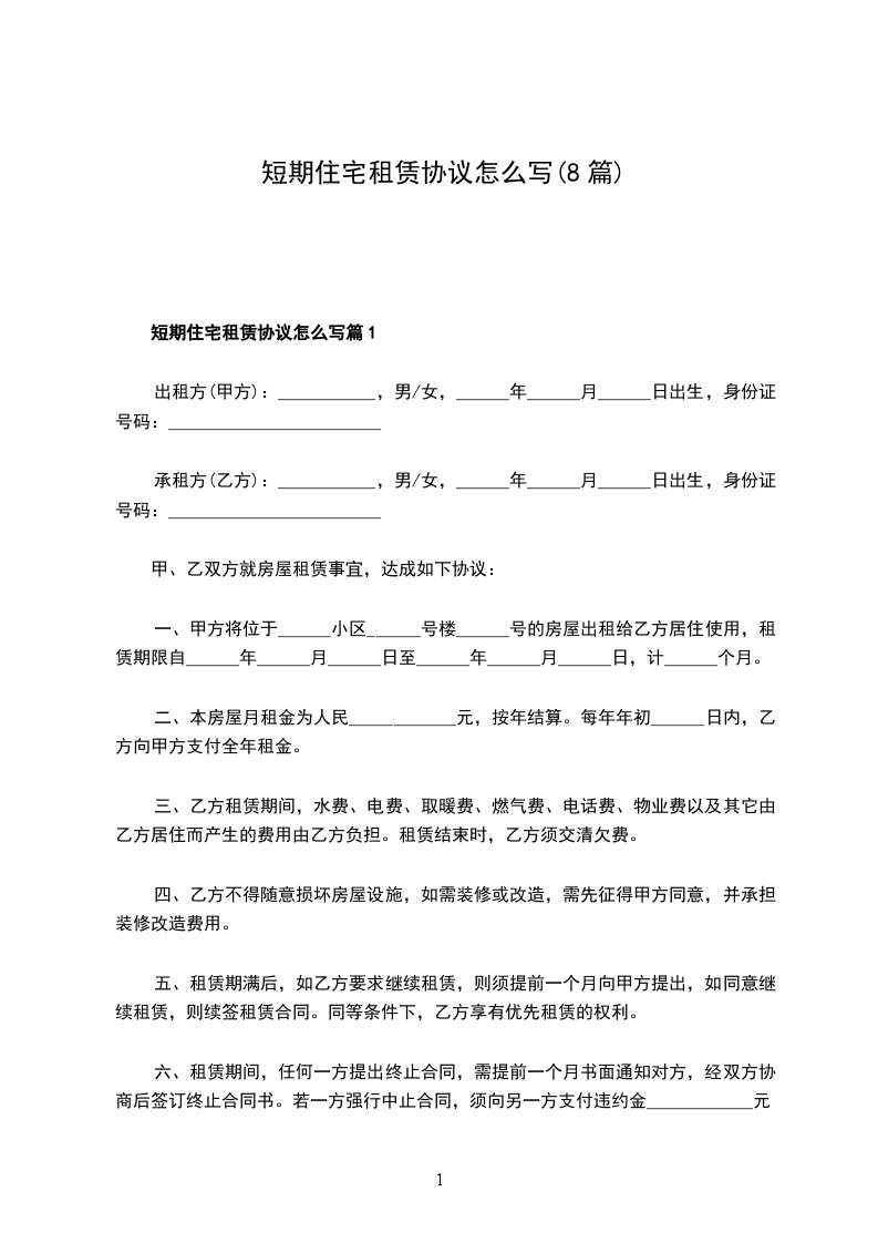 短期住宅租赁协议怎么写篇8