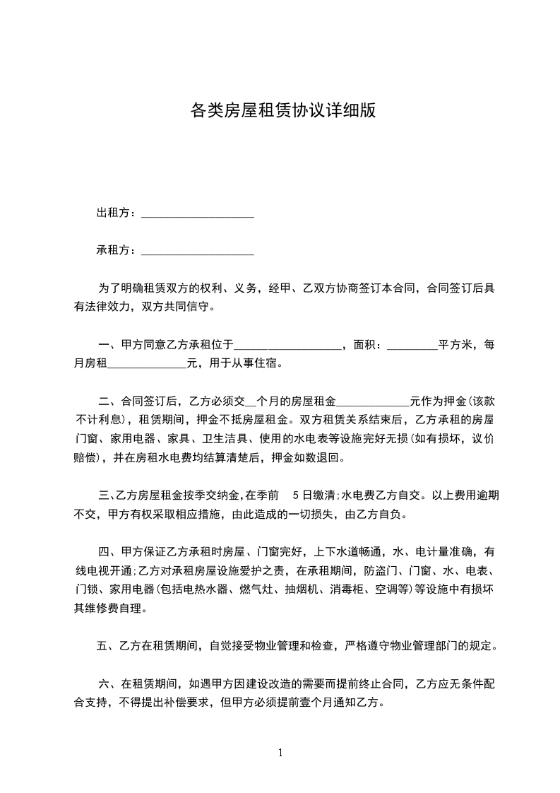 一、甲方同意乙方承租位于___________________,面积:_________平方米,每月房租______________元,用于从事住宿。