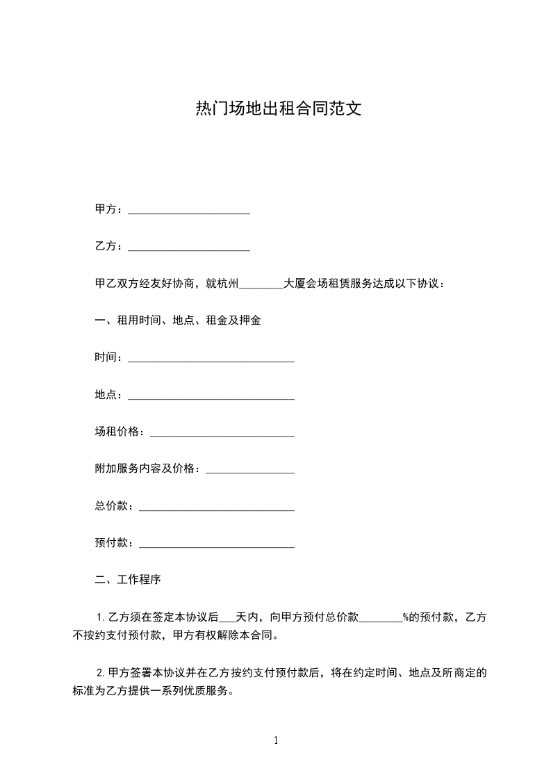 甲乙双方经友好协商,就杭州________大厦会场租赁服务达成以下协议: