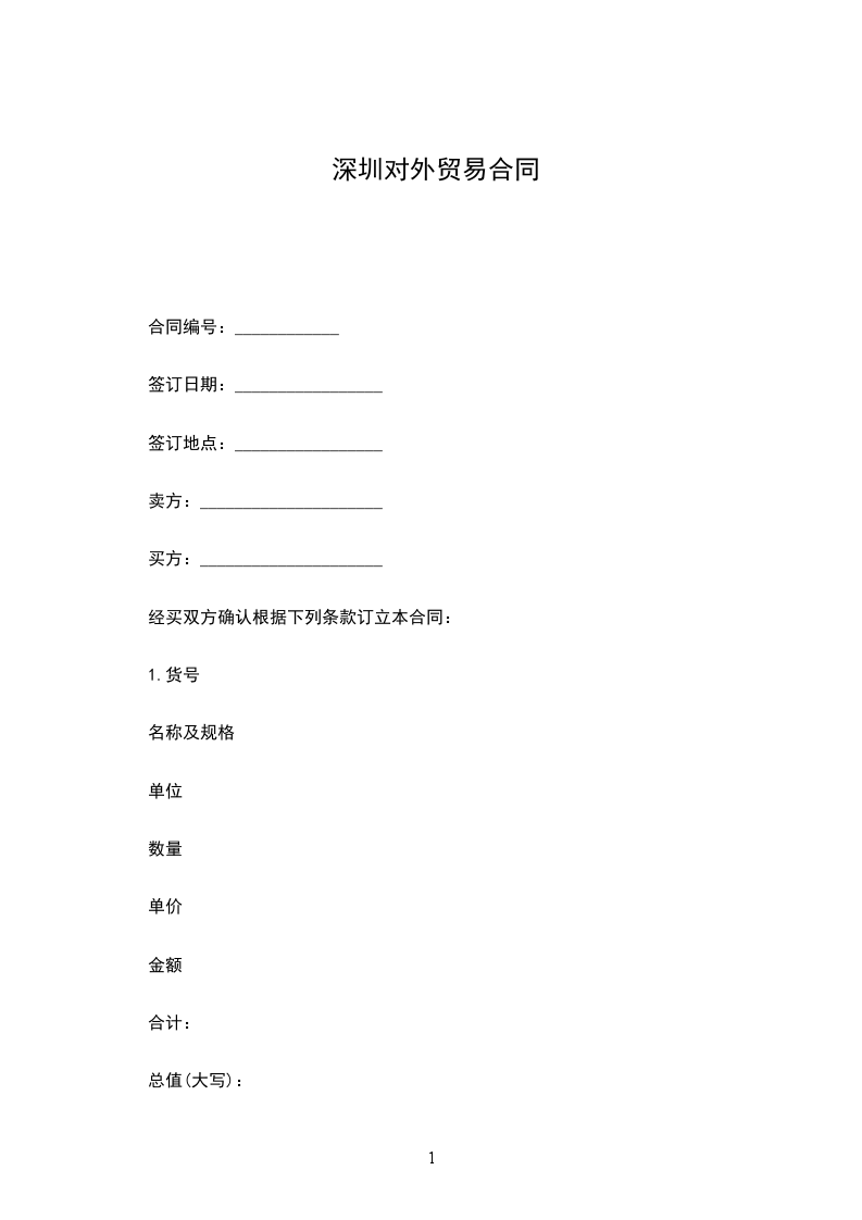 深圳对外贸易货物出口合同(中英文对照)