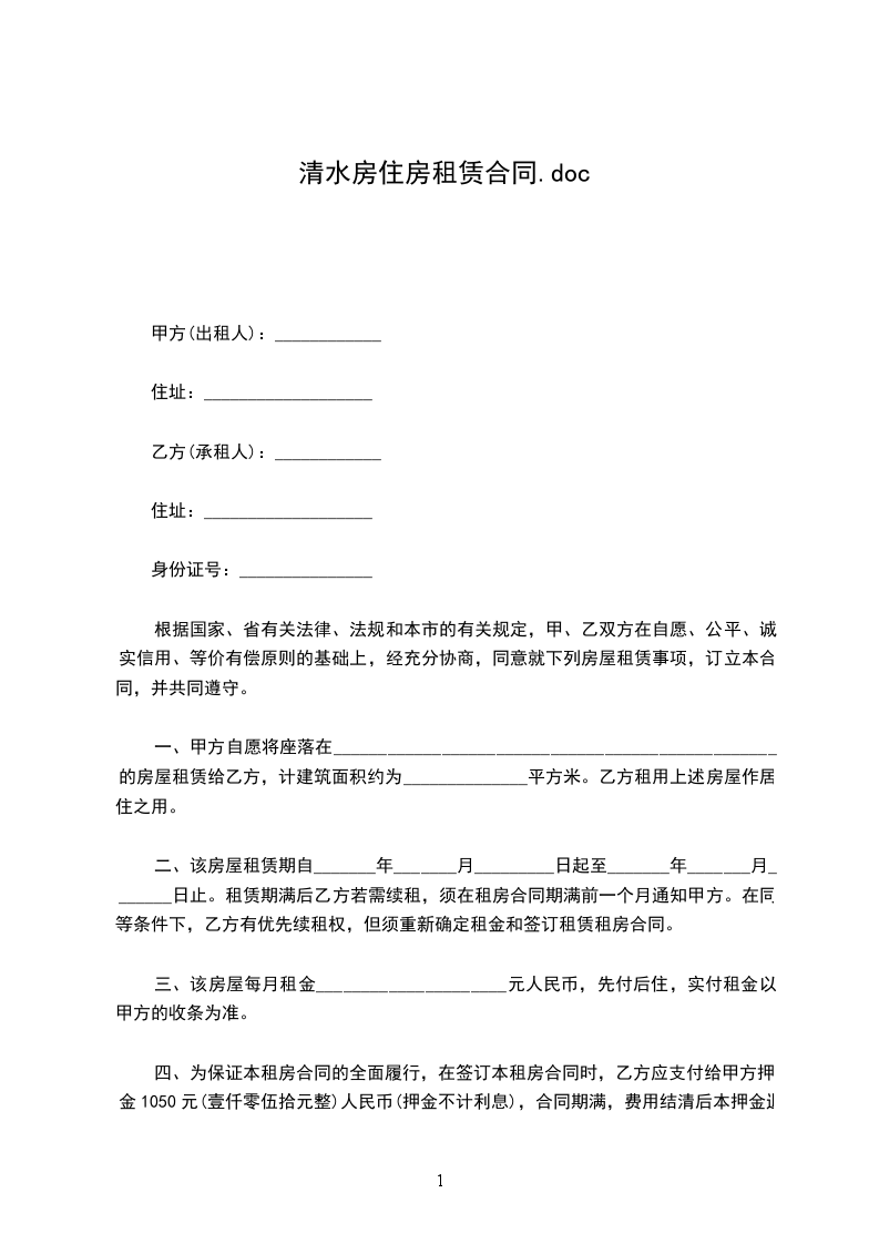 1、本合同所出租房子坐落在___市___街___巷___号。