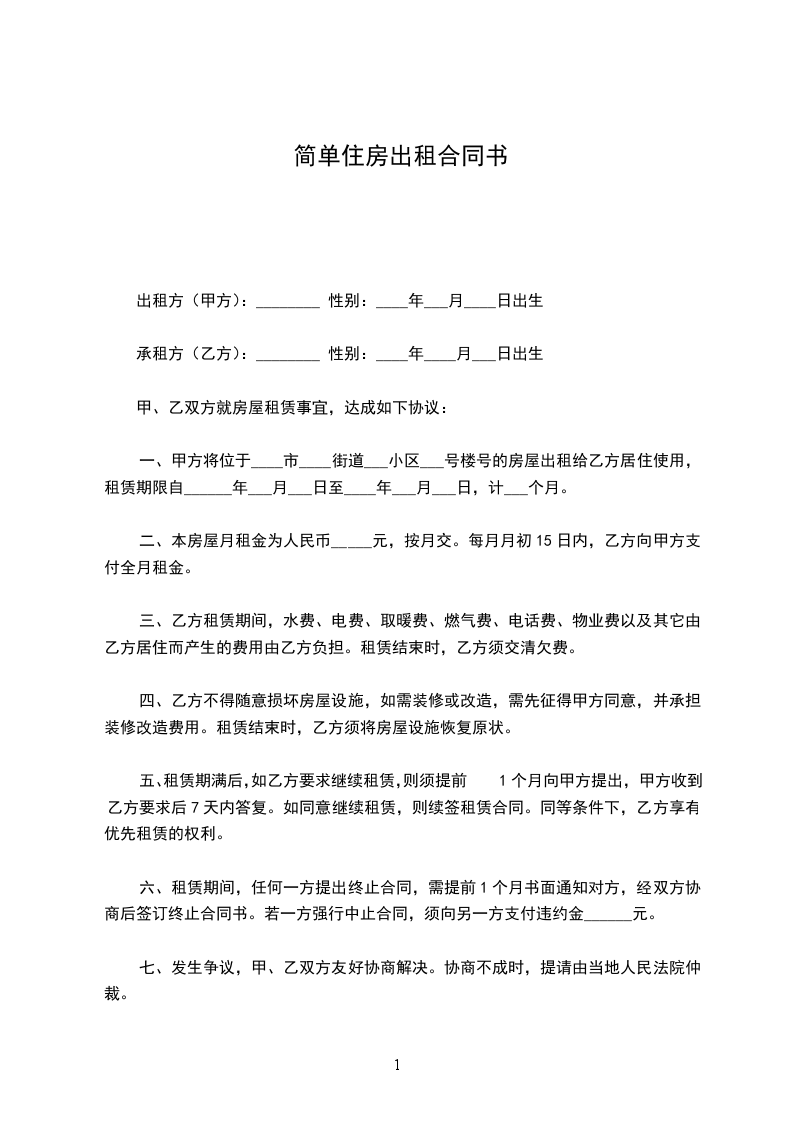 承租方(乙方):________ 性别:____年____月___日出生