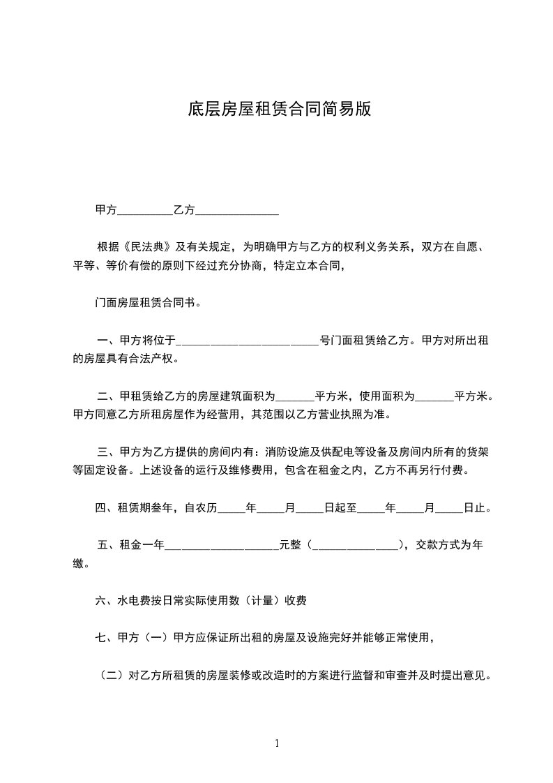 一、甲方将位于_________________________号门面租赁给乙方。甲方对所出租的房屋具有合法产权。