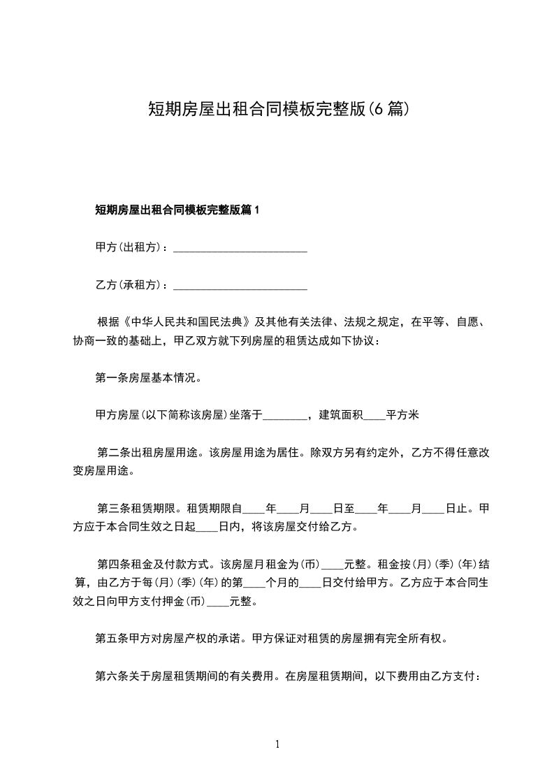 房屋出租合同完整版篇6