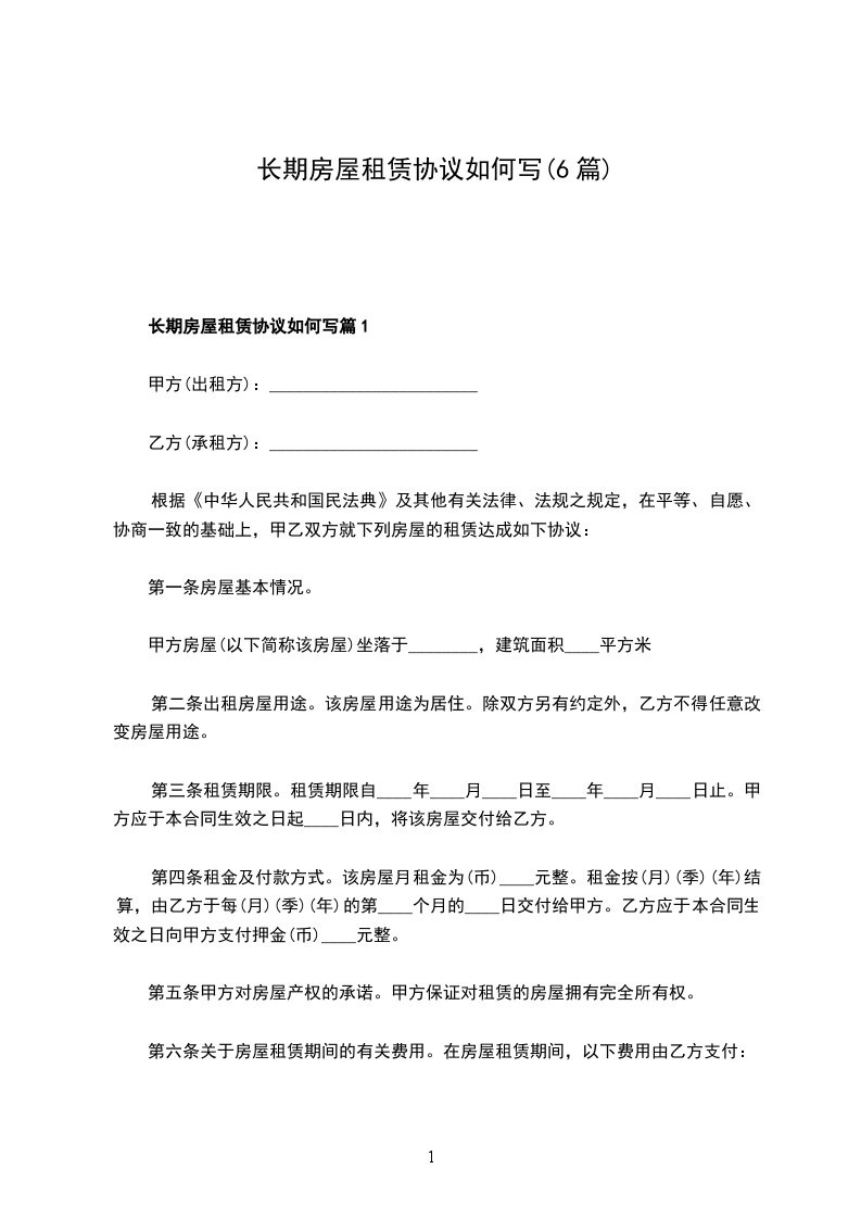 长期房屋租赁协议如何写篇1