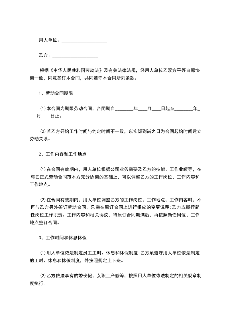 (2)本合同未尽事宜,按照国家及地方法律法规及用人单位的规章制度执行。