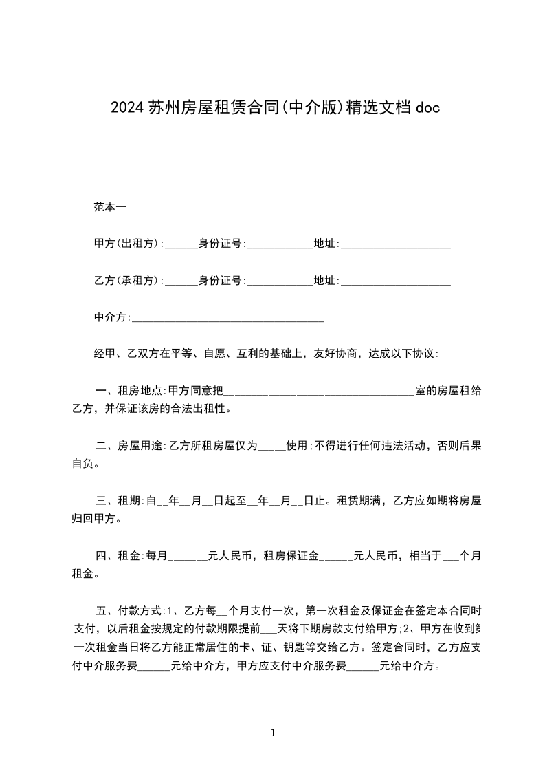 苏州房屋租赁合同(中介专业版)