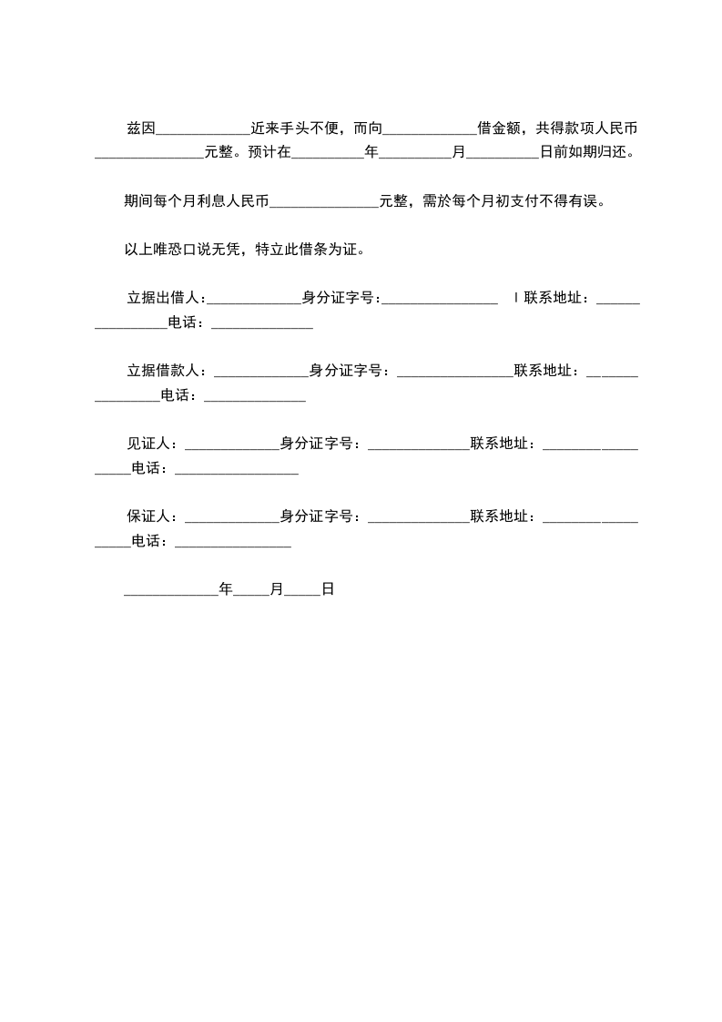借款期限从_____年_____月_____日起至_____年_____月_____日止。
