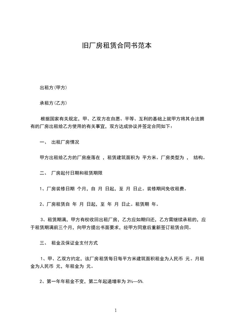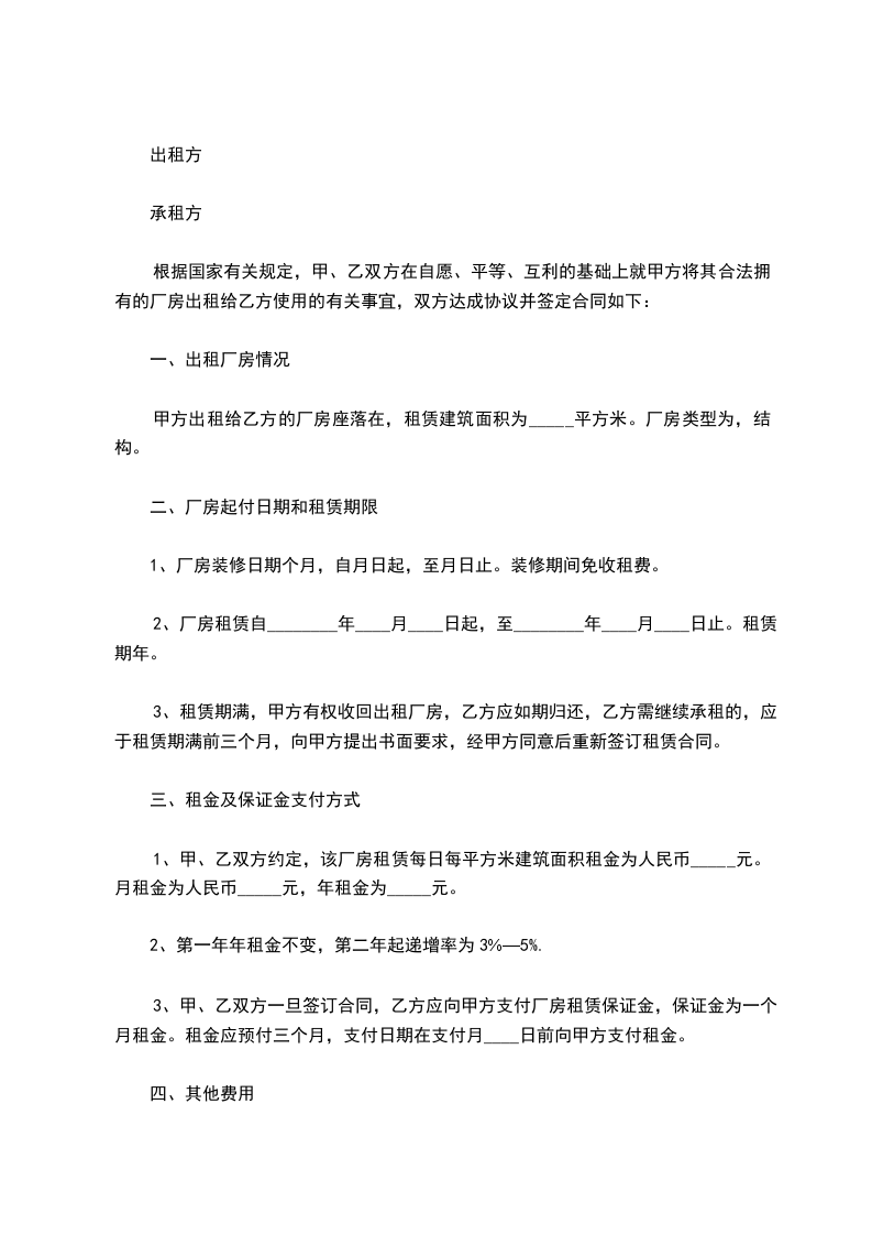 旧厂房出租合同通用范本