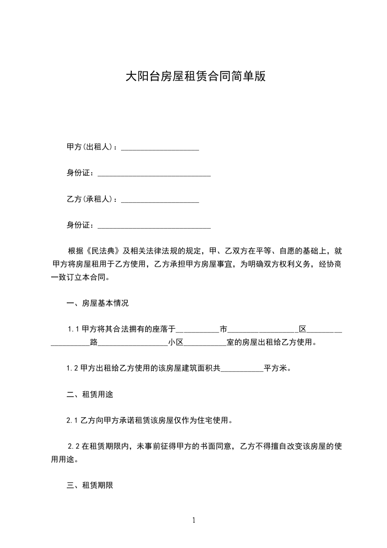 1.1甲方将其合法拥有的座落于___________市__________________区___________________路__________________小区___________室的房屋出租给乙方使用。