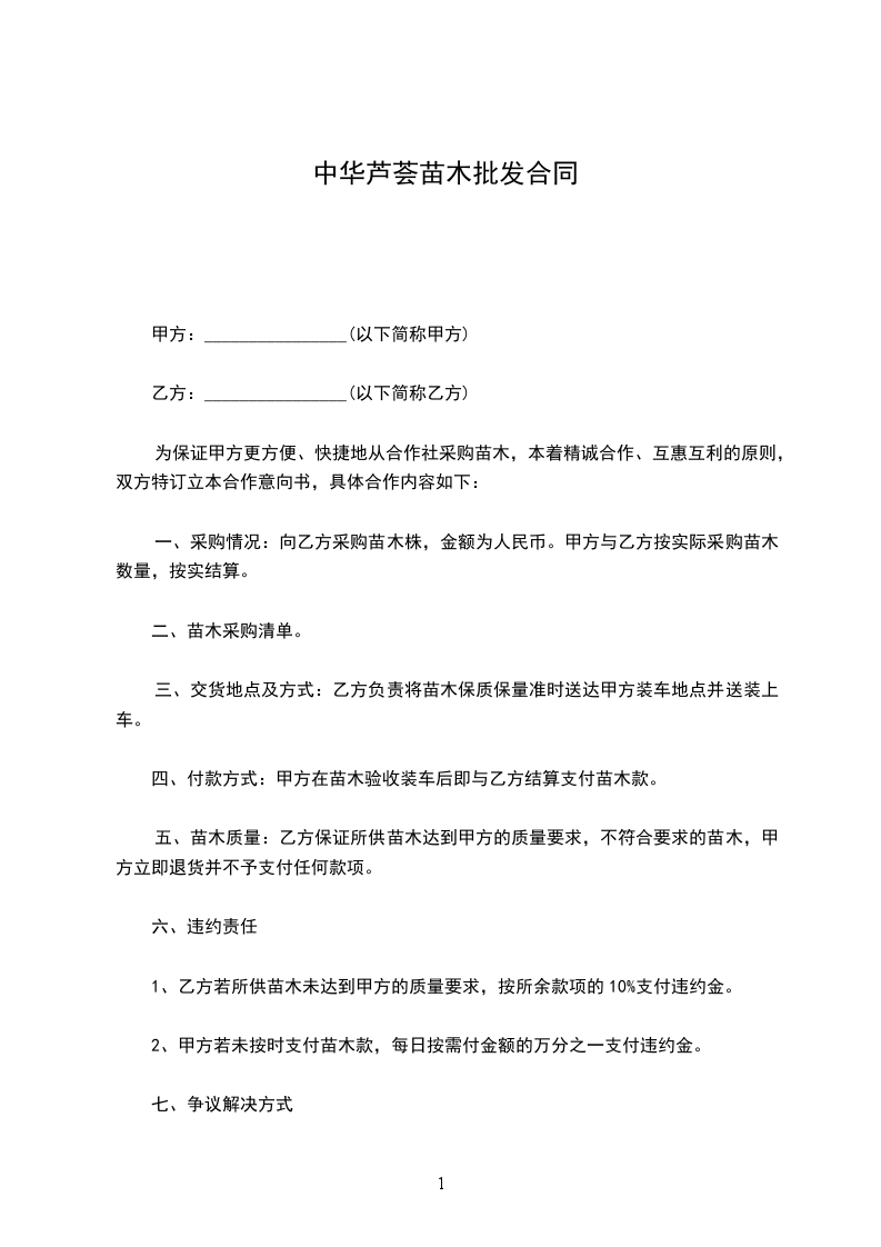 五、苗木质量:乙方保证所供苗木达到甲方的质量要求,不符合要求的苗木,甲方立即退货并不予支付任何款项。