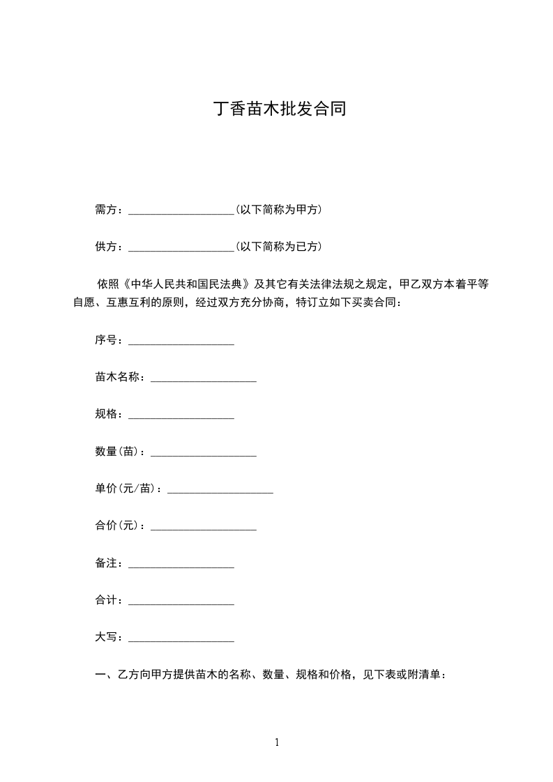丁香苗木批发合同