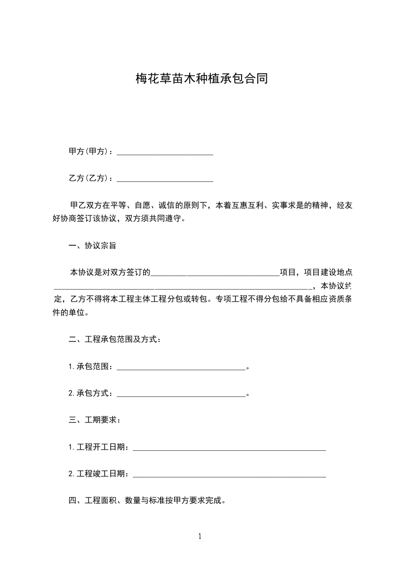 甲乙双方本着平等自愿、协商一致的原则,就苗木供需事宜签订本合同,具体事宜如下: