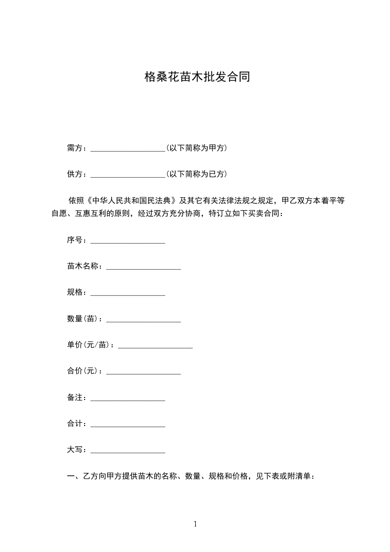 需方:___________________(以下简称为甲方)