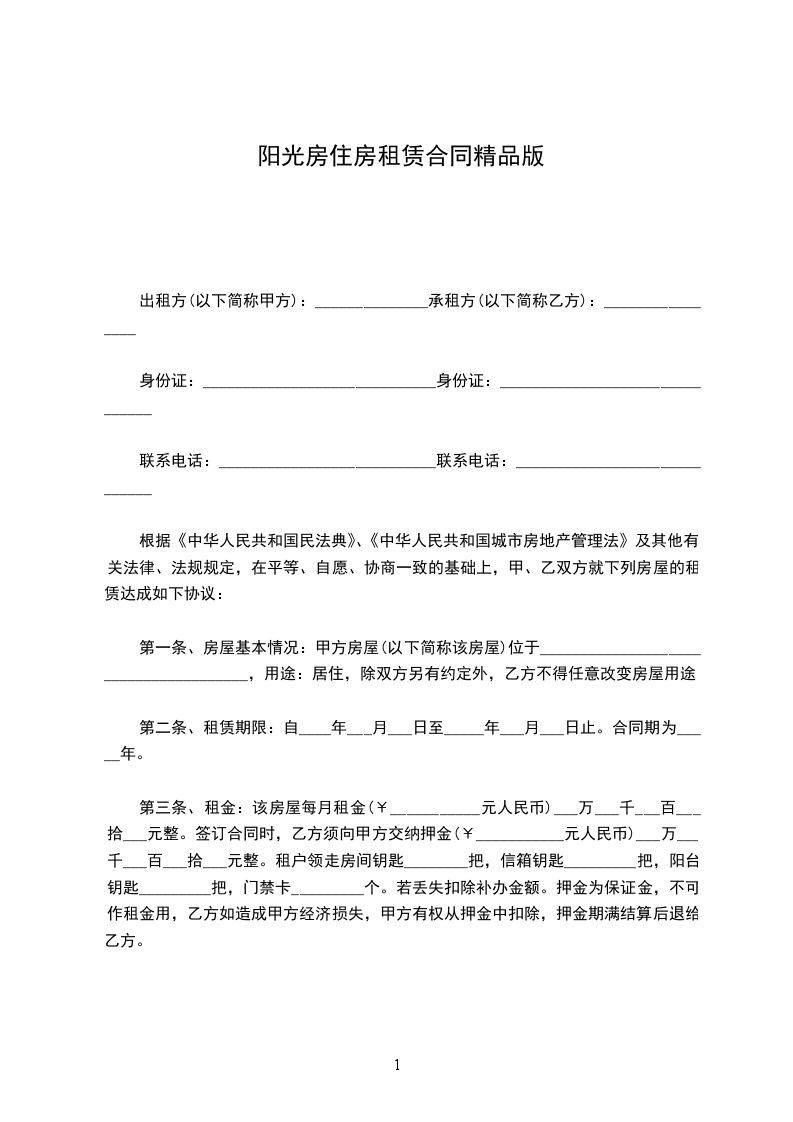 第一条、房屋基本情况:甲方房屋(以下简称该房屋)位于______________________________________,用途:居住,除双方另有约定外,乙方不得任意改变房屋用途。