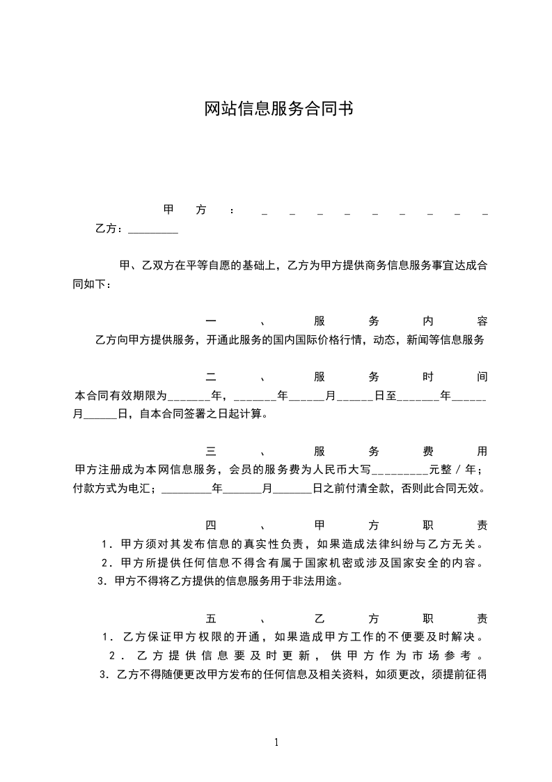 甲、乙双方在平等自愿的基础上,乙方为甲方提供商务信息服务事宜达成合同如下: