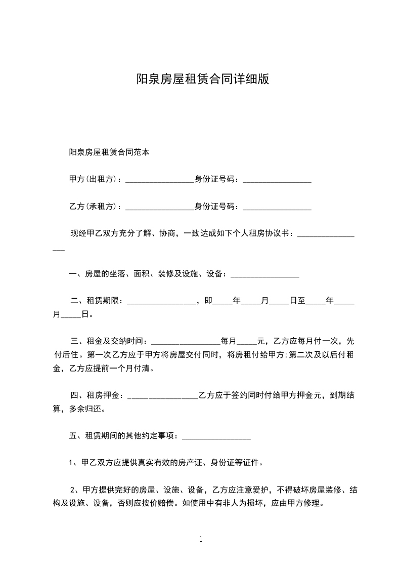 1.1甲方将其合法拥有的座落于___________市__________________区___________________路__________________小区___________室的房屋出租给乙方使用。