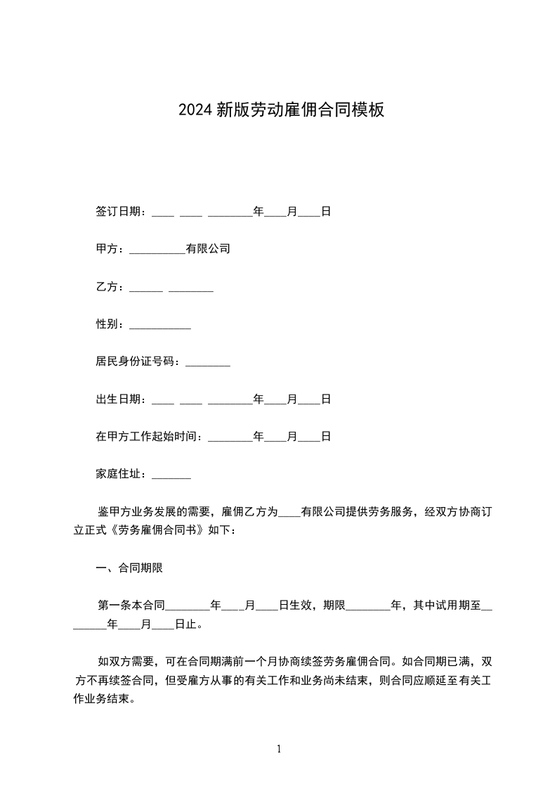 第一条合同期限