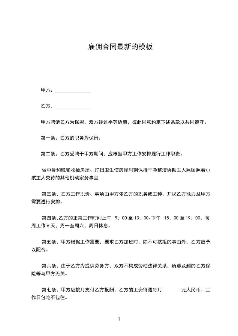 甲方(聘用单位):_____ _____ 乙方(受聘人):_____ _____ 甲乙双方根据国家和本市有关法规、规定,按照自愿、平等、协商一致的原则,签订本合同。