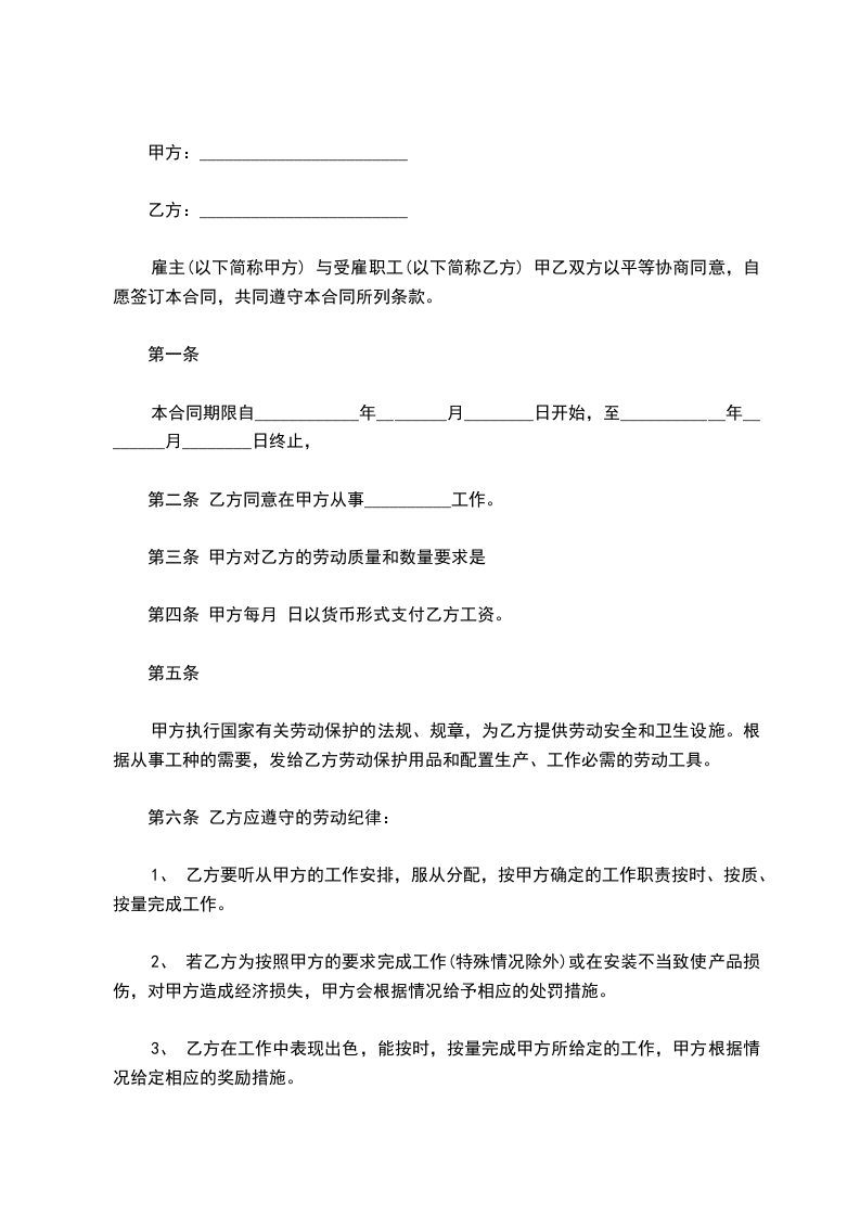 4、乙方如违反甲方的规章制度、劳动纪律,甲方按市府和单位的有关规定经予处罚。