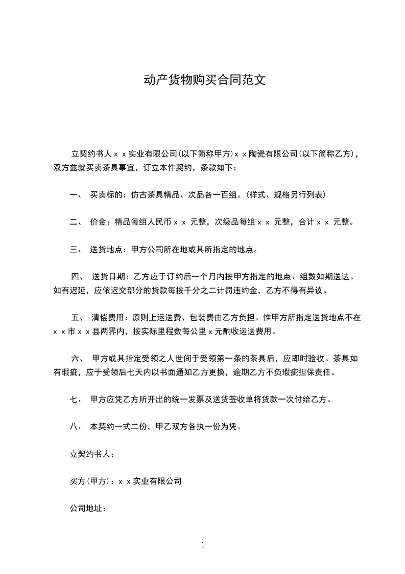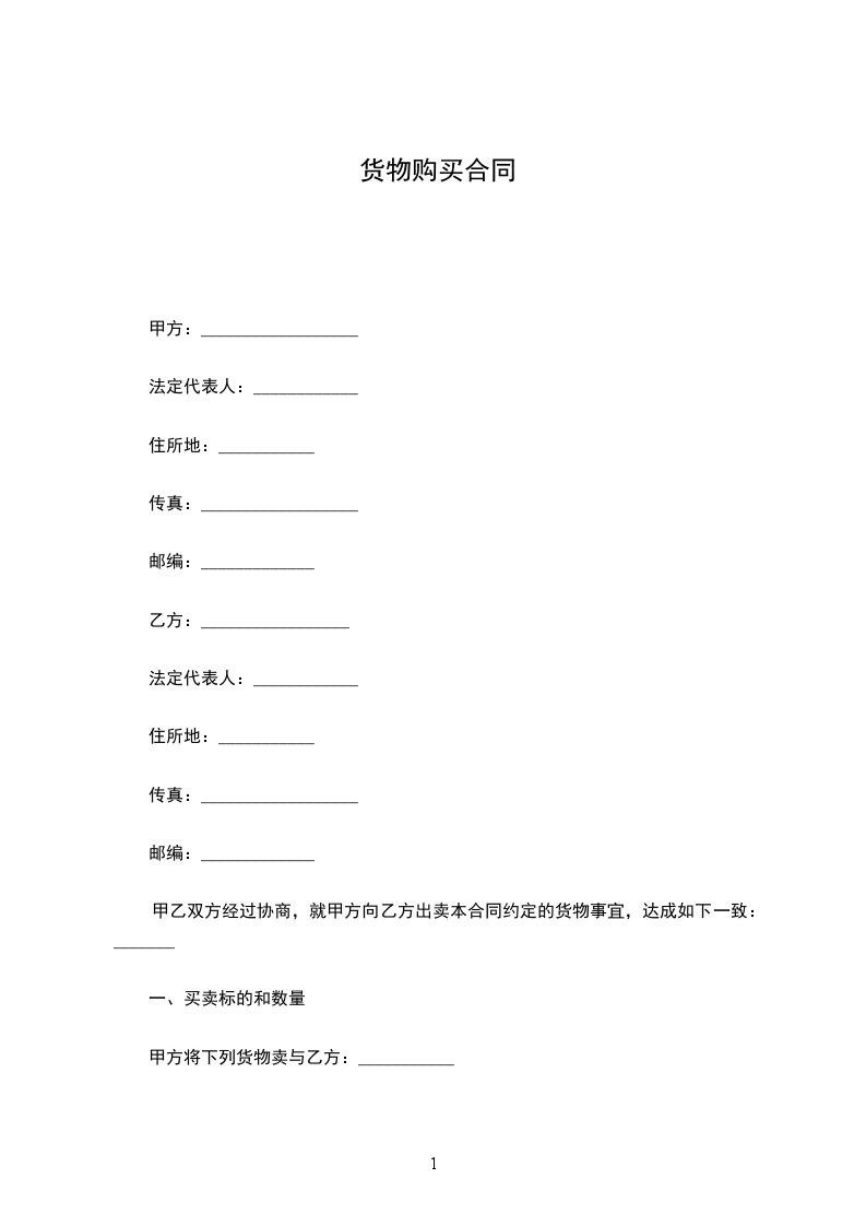 甲乙双方经过协商,就甲方向乙方出卖本合同约定的货物事宜,达成如下一致: