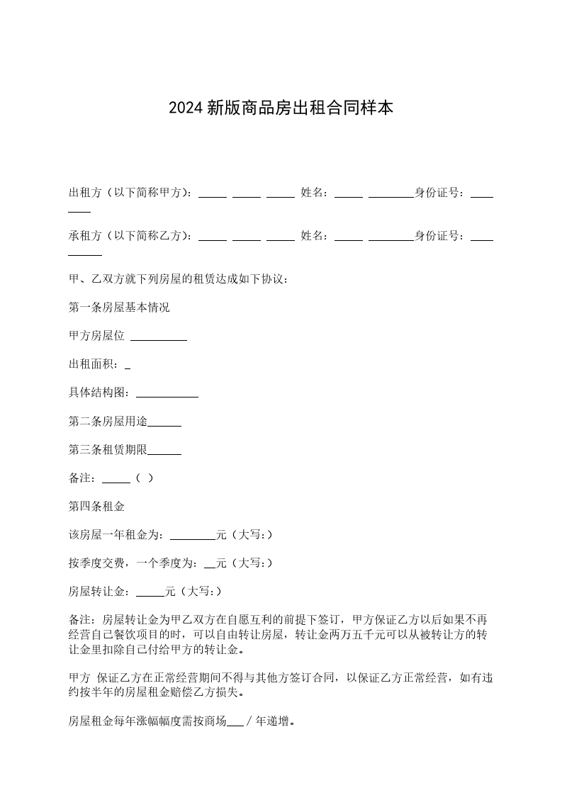 出租方(以下简称甲方):_____ _____ _____ 姓名:_____ ________身份证号:________