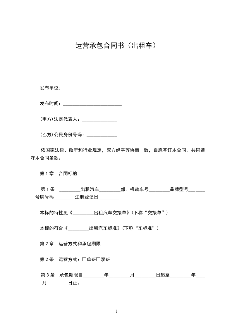 第18条 本合同变更,双方签订本合同附件1《_________出租汽车驾驶员运营任务承包合同变更/续订书》(下称“运营变更/续订书”)。