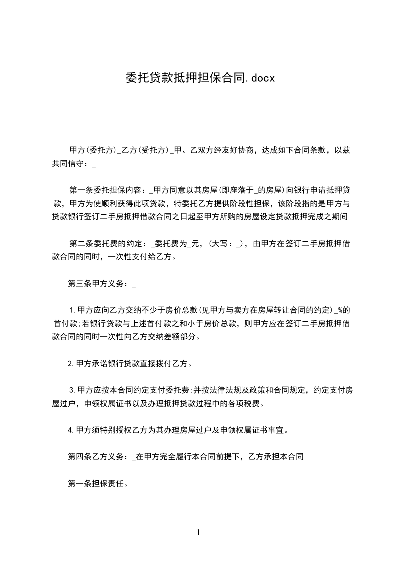 委托费为_________元,(大写:_________),由甲方在签订《二手房抵押借款合同》的同时,一次性支付给乙方。
