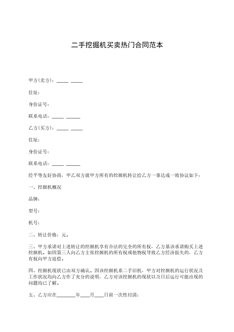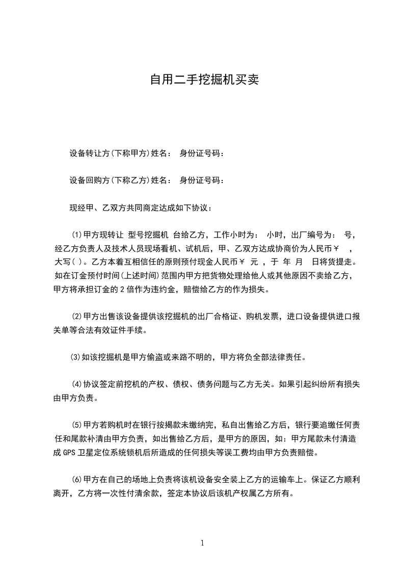 经平等友好协商,甲乙双方就甲方所有的挖掘机转让给乙方一事达成一致协议如下: