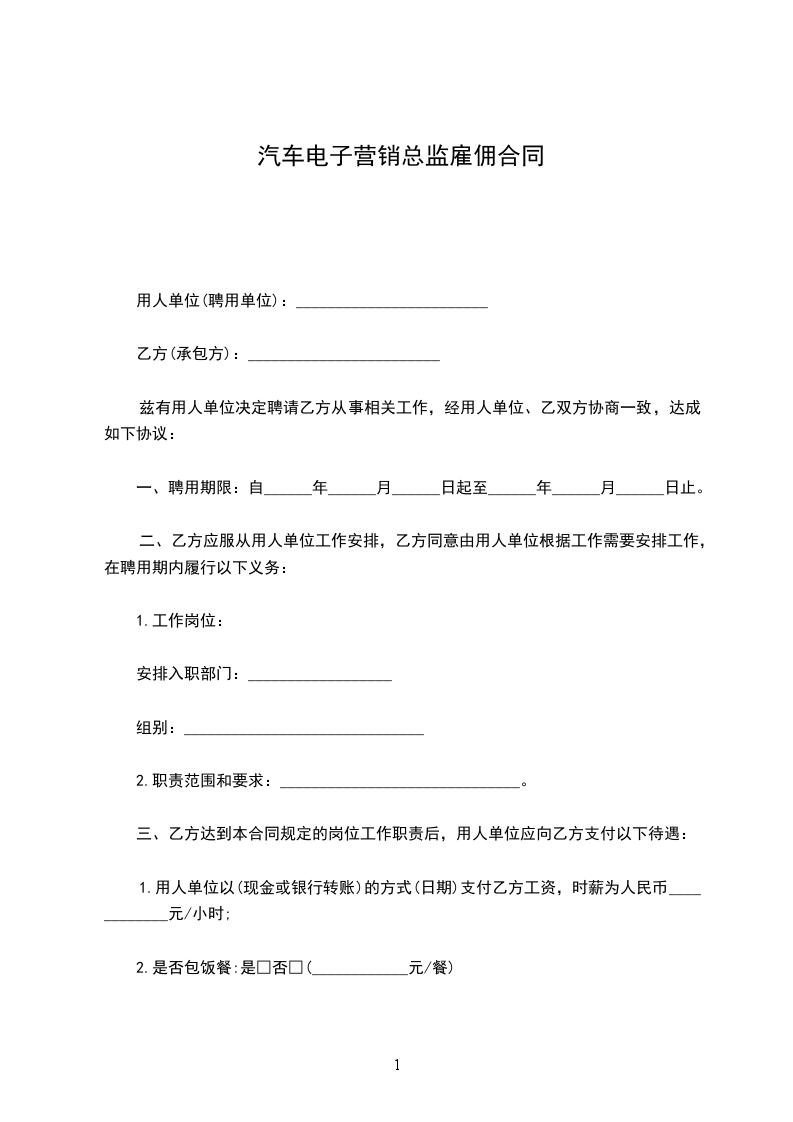 一、聘用期限:自______年______月______日起至______年______月______日止。