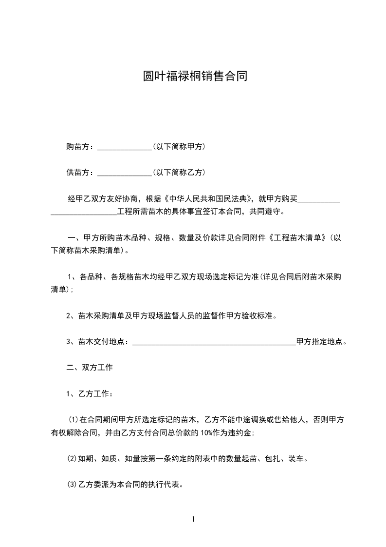 一、甲方向乙方采购苗木_______株,金额为人民币________.甲方与乙方按实际采购苗木数量,按实结算。