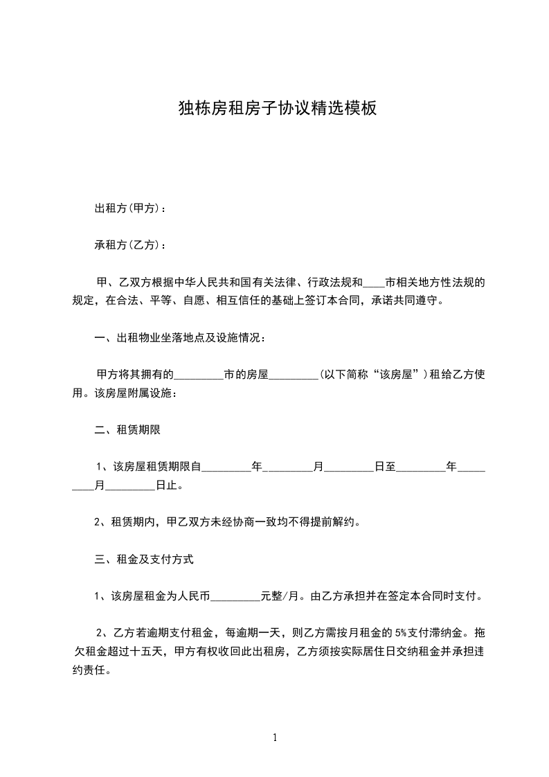 在房屋租赁期间,任何一方违反本合同的规定,依据事实轻重,按年度须向对方交纳年度租金的____%作为违约金。乙方逾期未交付租金的,每逾期一日,甲方有权按月租金的2%向乙方加收滞纳金。