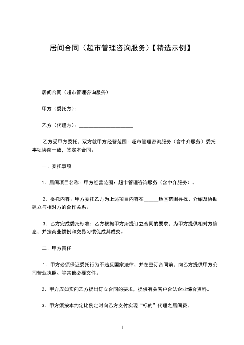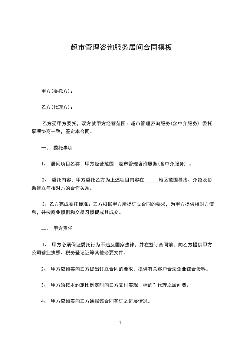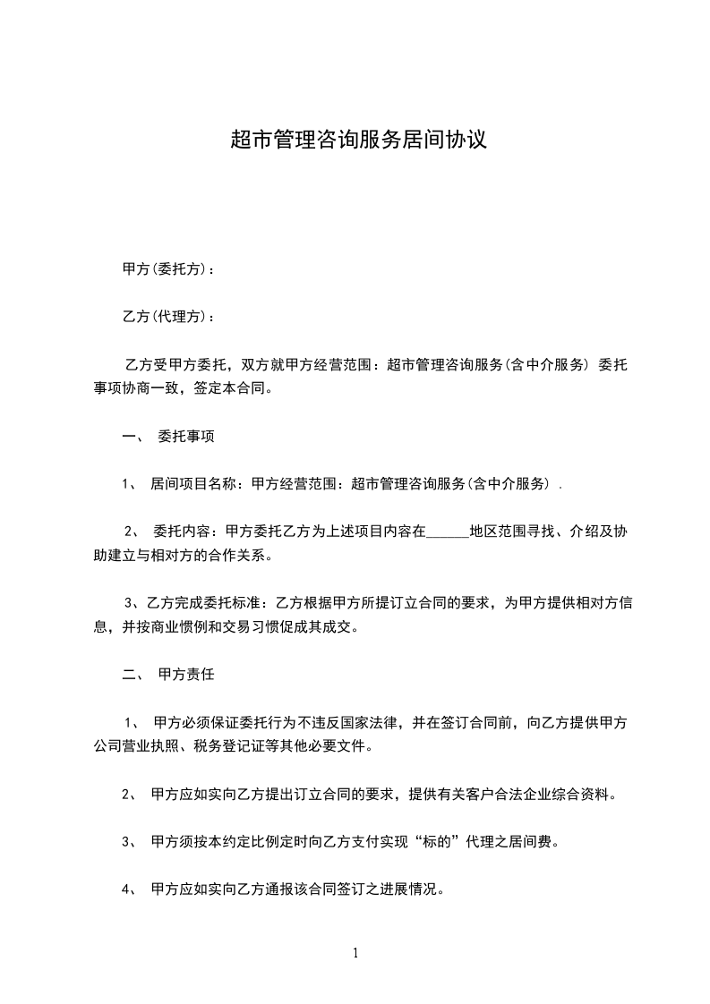 1、 居间项目名称:甲方经营范围:超市管理咨询服务(含中介服务) 。