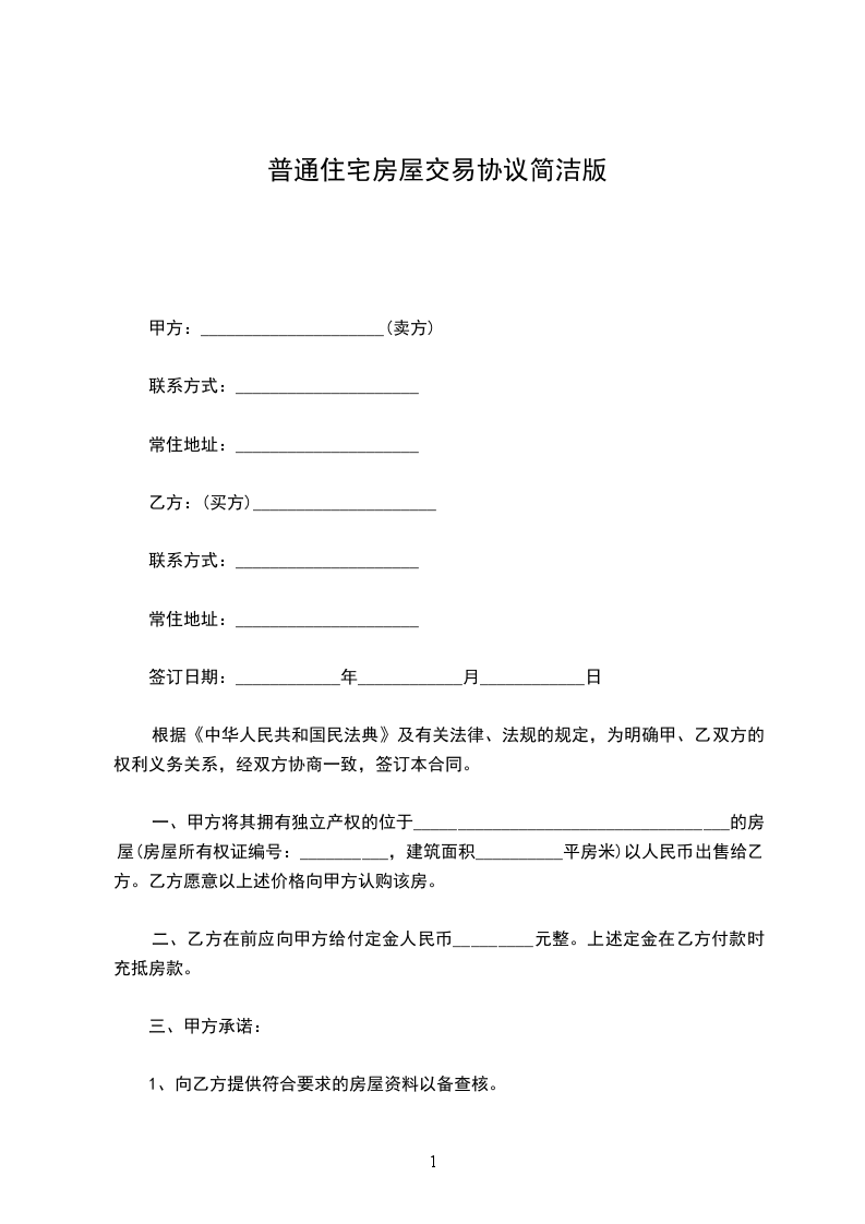 甲方现有_____________________㎡面积的房屋,套型为______________,地址:___________________________。在签订本协议时,甲方向乙方出示该房及本人的有关合法手续。经甲、乙双方共同协商达成以下协议:
