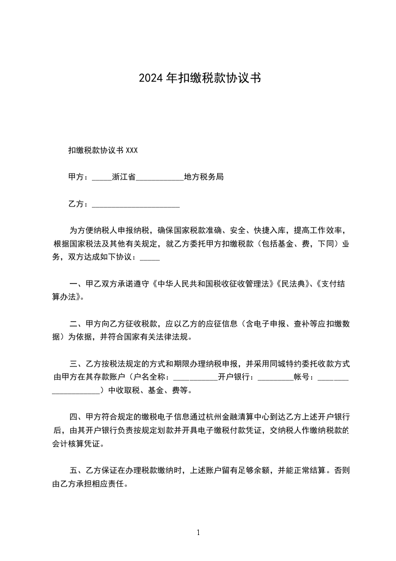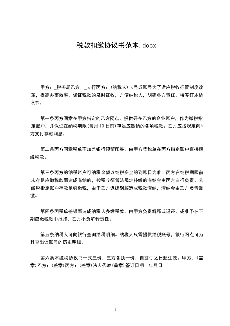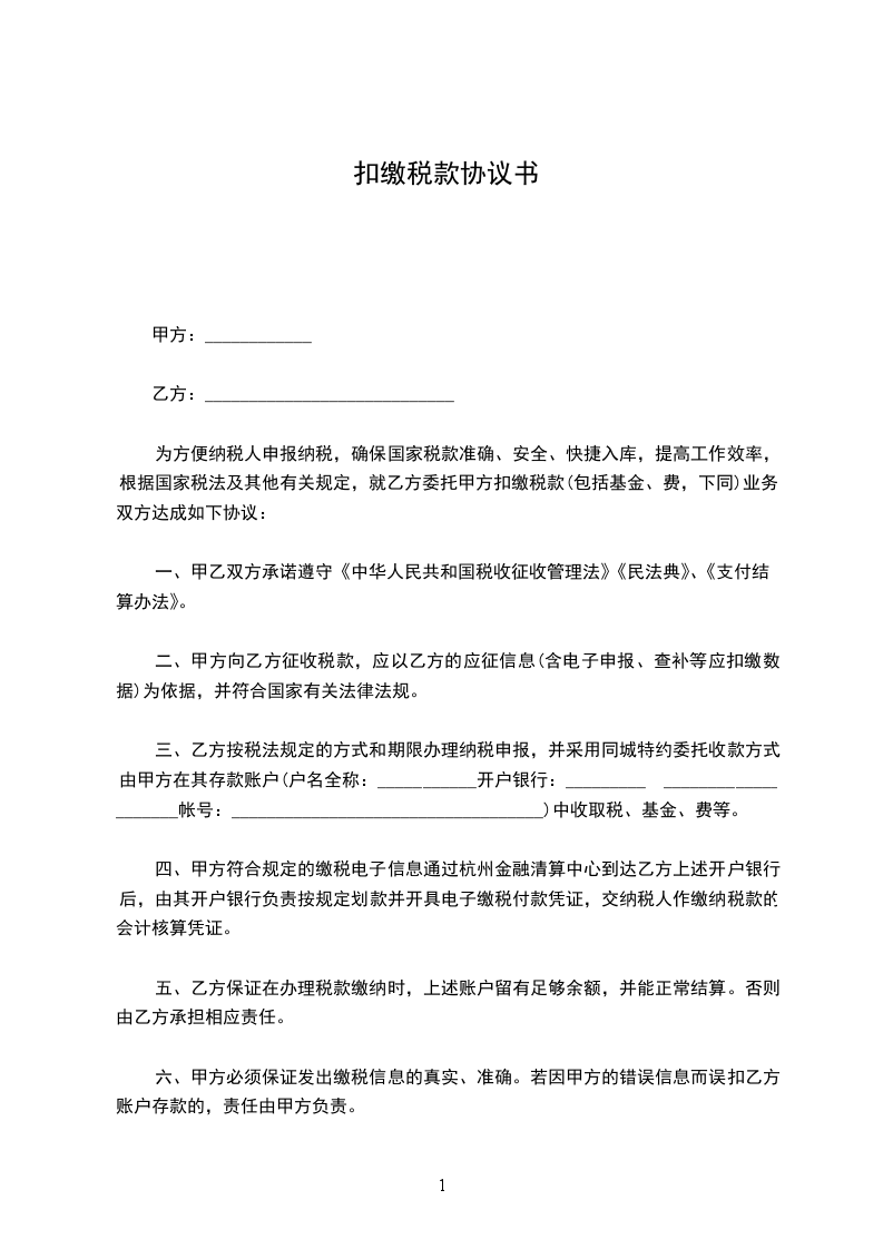 为方便纳税人申报纳税,确保国家税款准确、安全、快捷入库,提高工作效率,根据国家税法及其他有关规定,就乙方委托甲方扣缴税款(包括基金、费,下同)业务,双方达成如下协议: