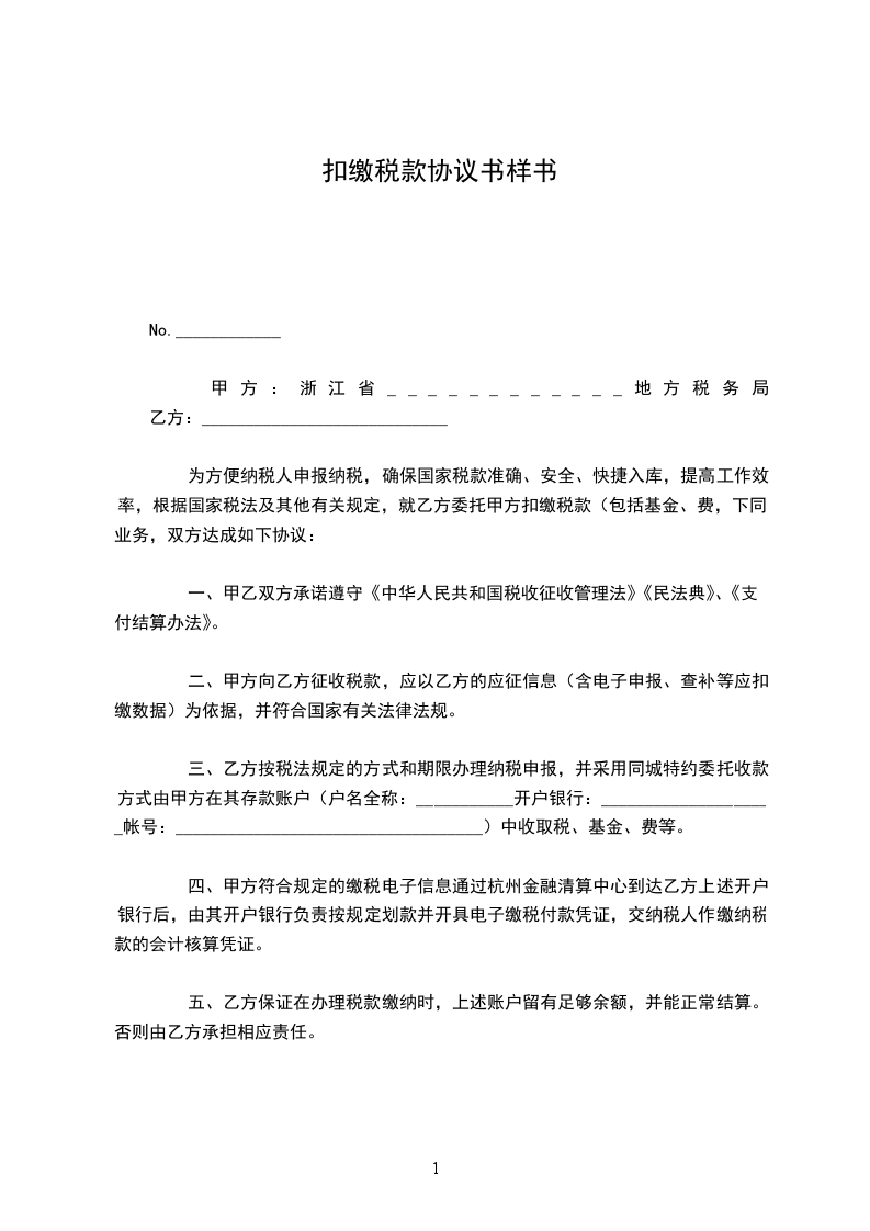 七、乙方需变更付款银行或账号,均应另签新的协议;变更主管税务机关的,原已签协议继续有效。(因开户银行系统升级等原因自动更新帐号的除外)。