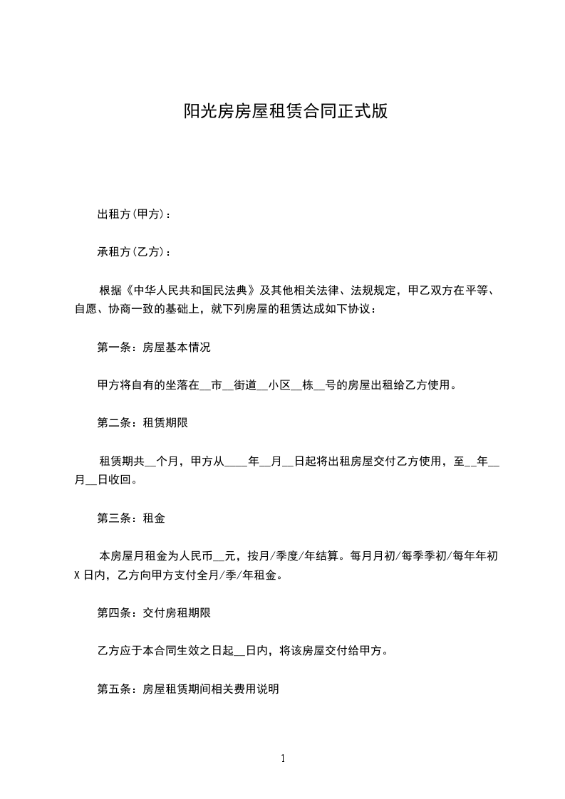 根据《中华人民共和国民法典》及其他相关法律、法规规定,甲乙双方在平等、自愿、协商一致的基础上,就下列房屋的租赁达成如下协议: