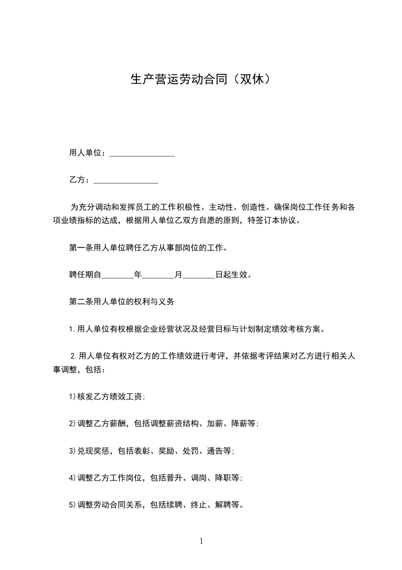 (一)根据用人单位工作需要,乙方同意从事岗位工作,根据用人单位的工作需要,经用人单位乙双方协商同意,可以变更工作地点。
