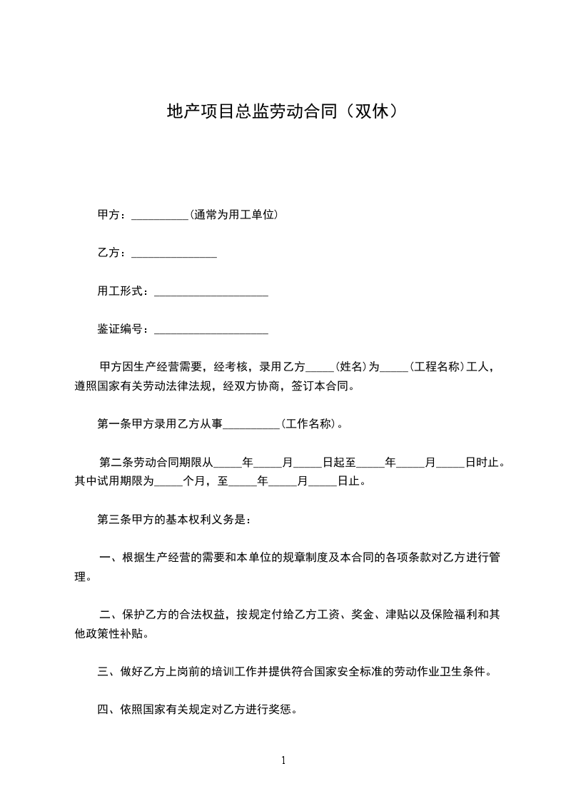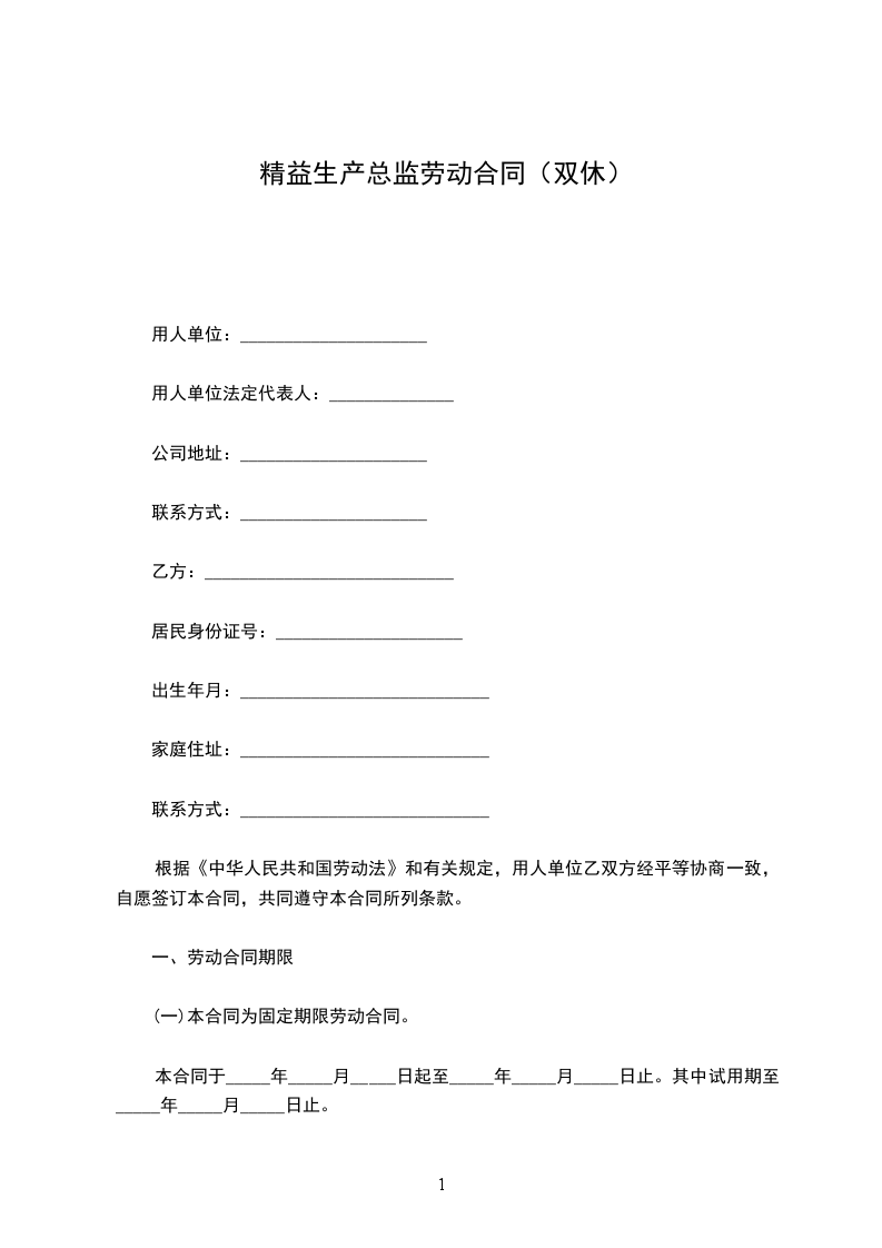 第一条合同类型和期限