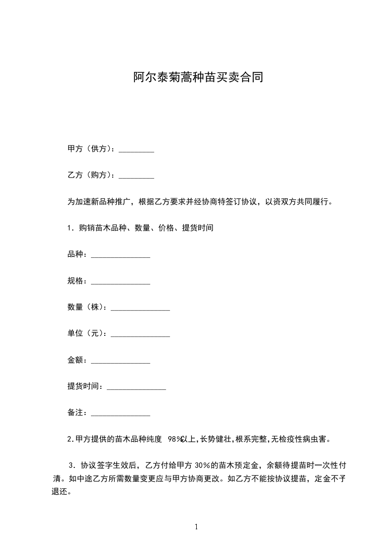 3.协议签字生效后,乙方付给甲方30%的苗木预定金,余额待提苗时一次性付清。如中途乙方所需数量变更应与甲方协商更改。如乙方不能按协议提苗,定金不予退还。