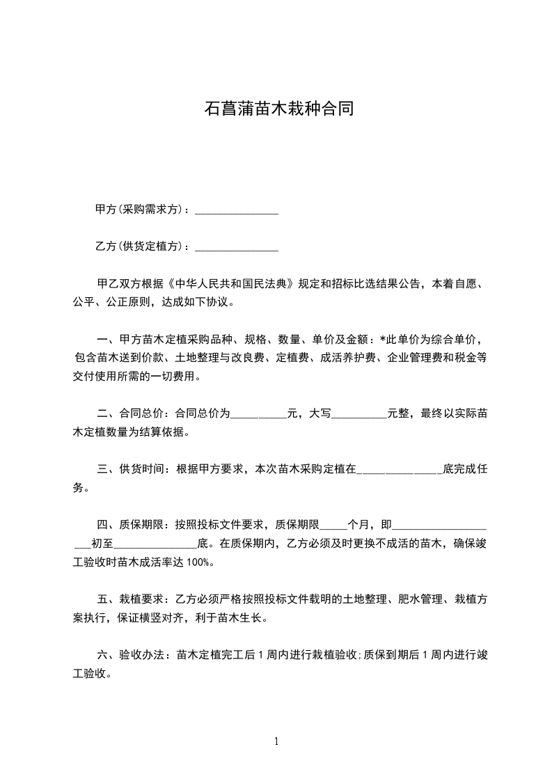 石菖蒲苗木零售合同